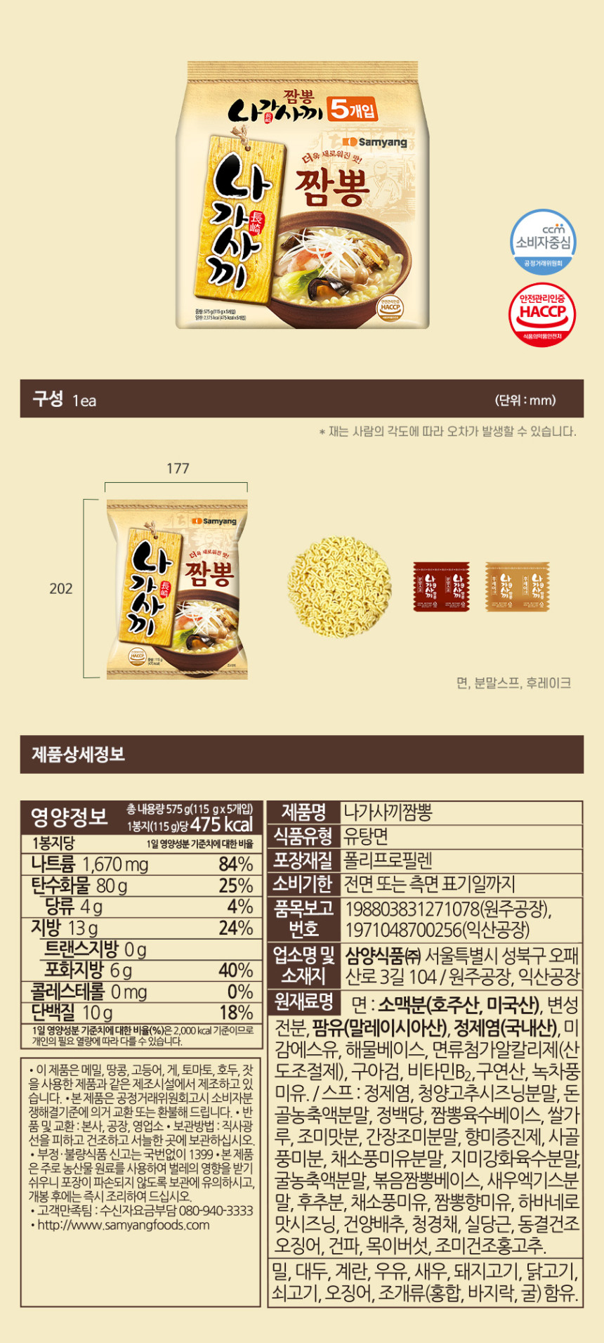 이미지 확대보기[단일배송지 대량할인 무배] 삼양 나가사끼짬뽕 멀티 5입 라면