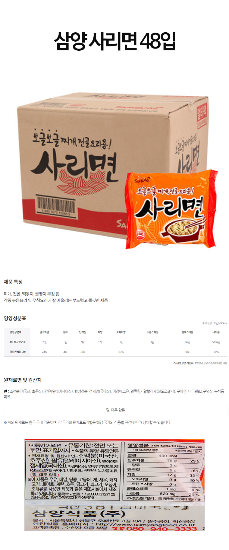 • [단일배송지 대량할인 무배] 삼양공식대리점 삼양 사리면 48입